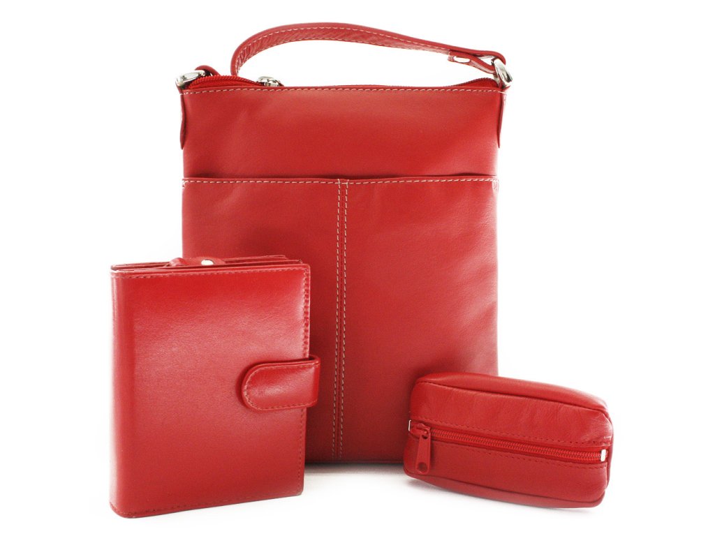 Luxusná červená sada z pravej kože predstavuje elegantné a praktické riešenie pre ženy, ktoré oceňujú štýl aj funkčnosť. Set obsahuje dámsku kabelku, peňaženku a kľúčenku – dokonale zladené doplnky v modernom červenom odtieni.