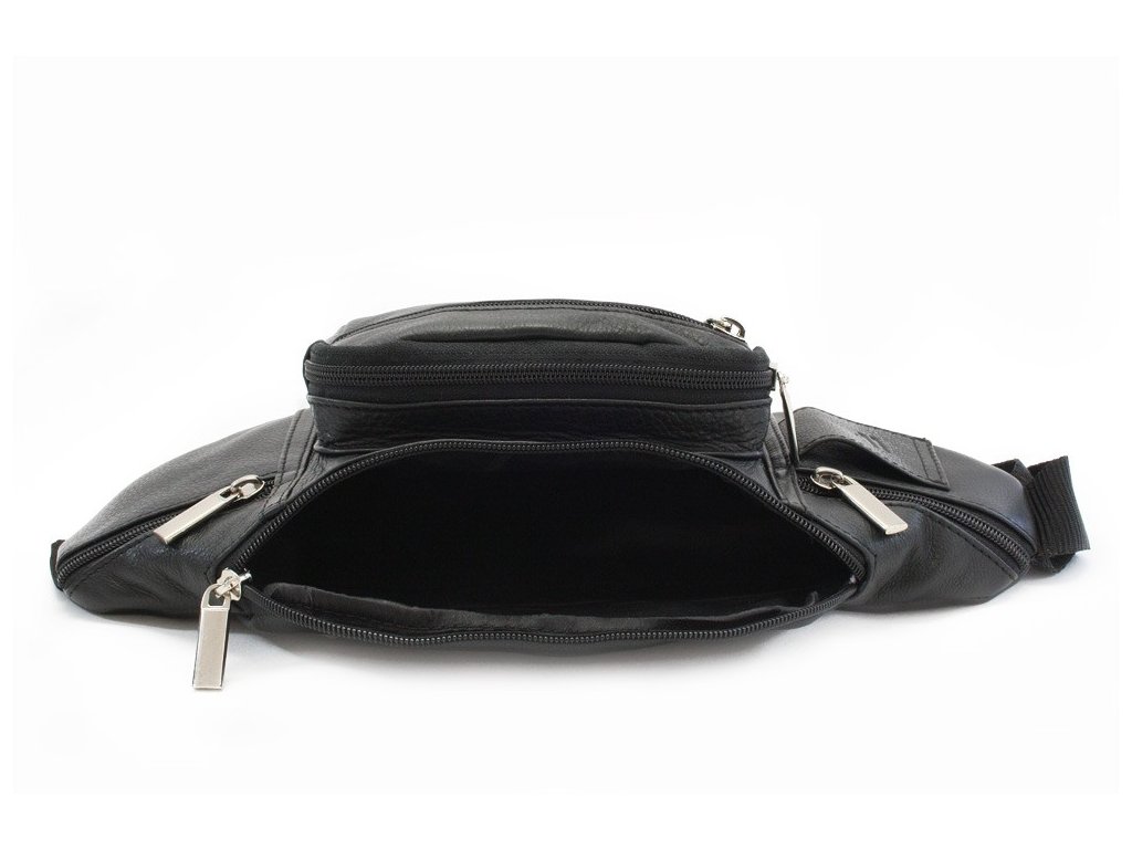 Moderná voľnočasová taštička okolo pásu - ľadvinka má 5 zipsových kapsí rôznych veľkostí, do ktorých sa vojde peňaženka a iné drobnosti. Na zadnej strane je skrytá zipsová kapsa. Zipsy sú v čiernej farbe so strieborným kovaním. Šitie je čierne. Popruh v čiernej farbe je nastaviteľný do cca 90 cm, celková dĺžka aj s ľadvinkou je cca 140 cm.