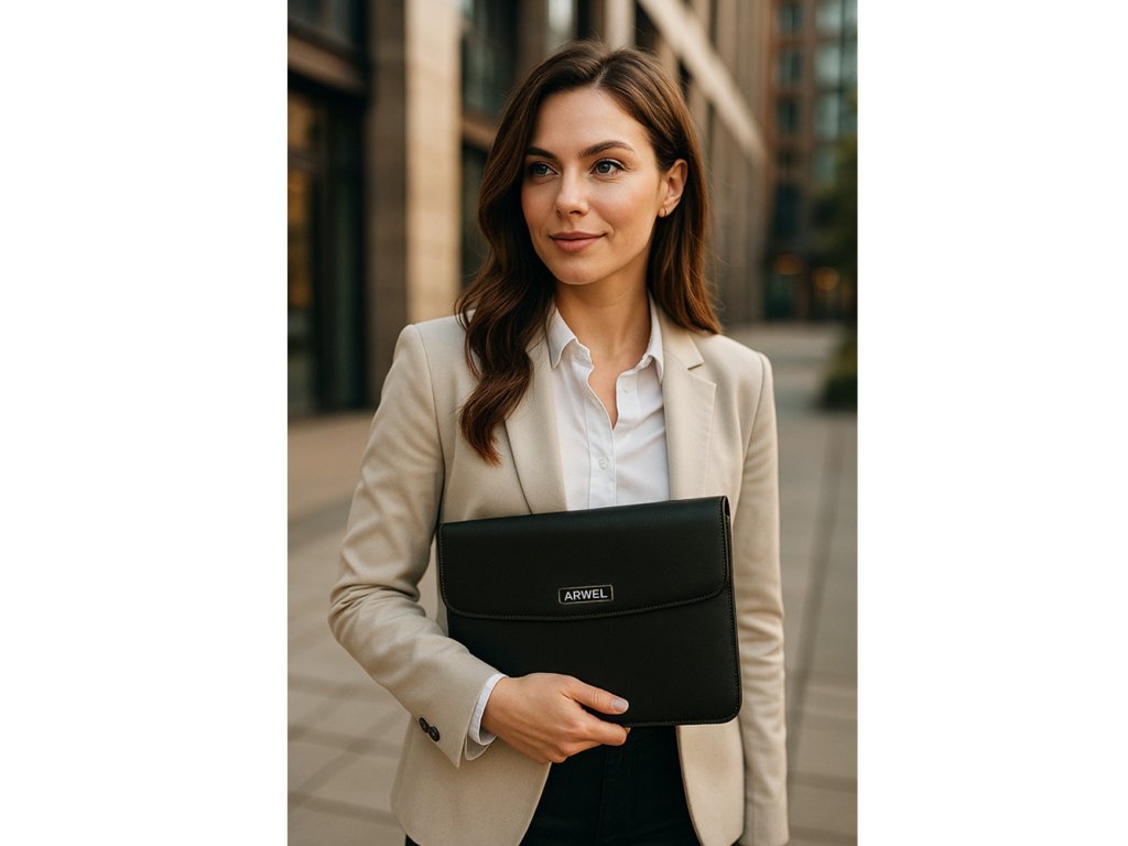 Stylový kožený obal na tablet z pravé hovězí kůže (PDM) je navržen pro bezpečné a elegantní uložení zařízení až do velikosti 10". Vyroben z kvalitní černé kůže s jemnou strukturou, nabízí nadčasový vzhled, odolnost a dlouhou životnost.