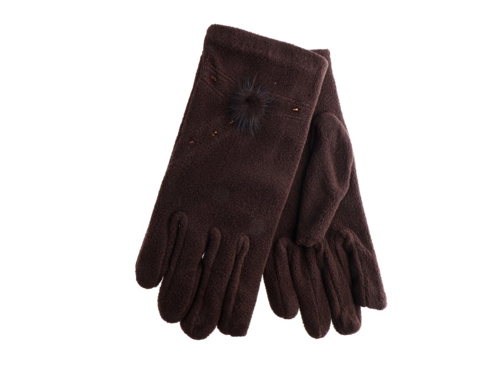 Dámske froté rukavice s bombuľkou a drobnými kamienkami hnedé