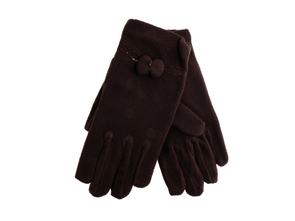 Dámske froté rukavice s mašličkou hnedé