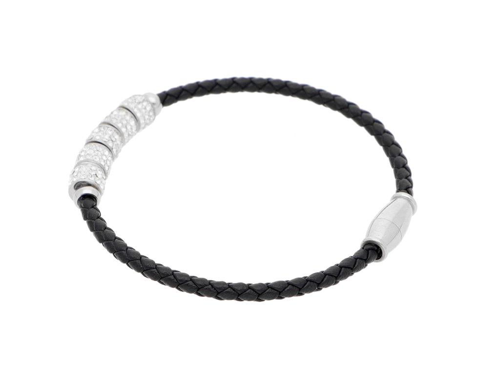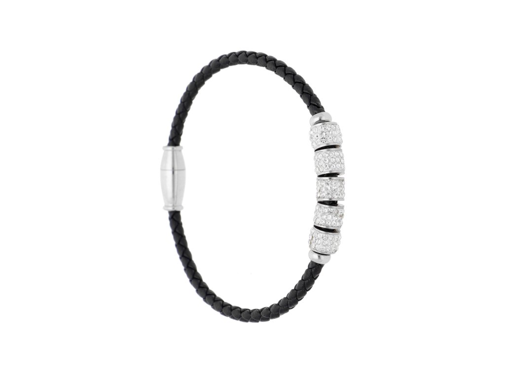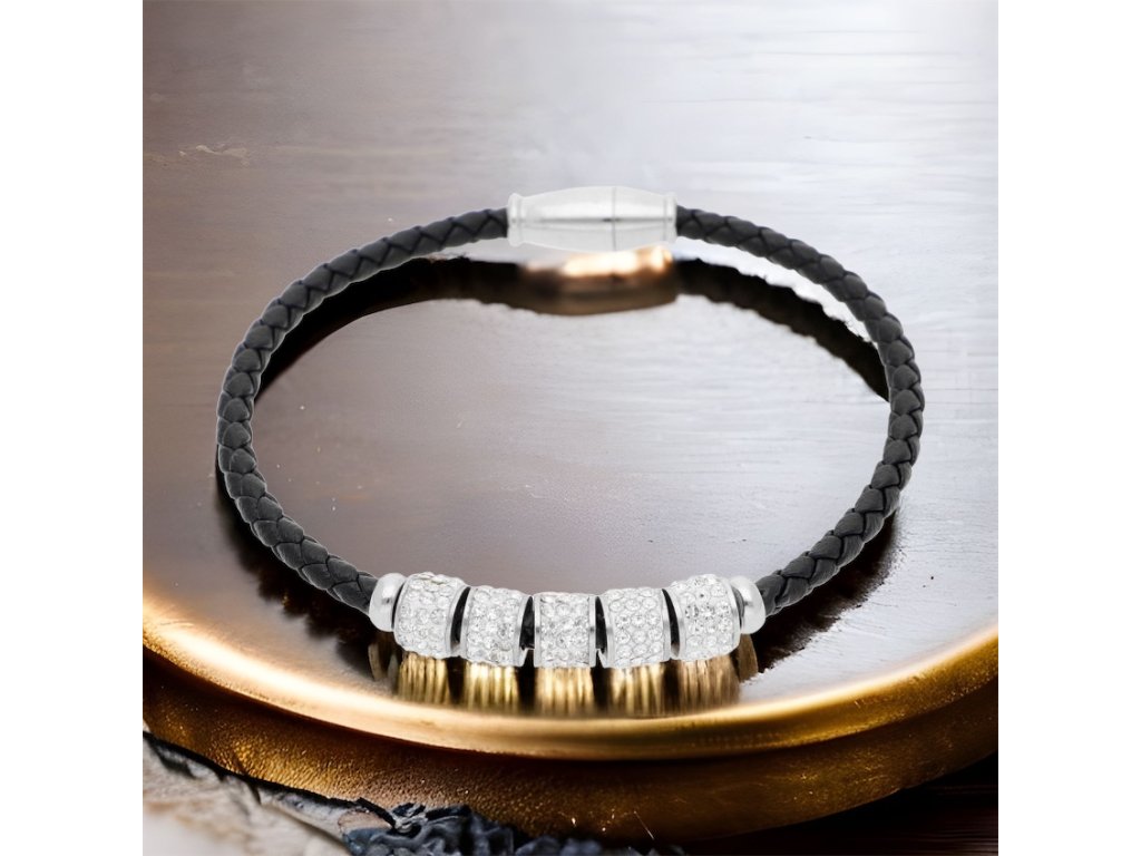 Elegantný dámsky náramok trinidad v čiernom prevedení s magnetickým zapínaním. Vyrobený z chirurgickej ocele a eco kože, doplnený o zirkóny. Ideálny doplnok pre každú príležitosť.