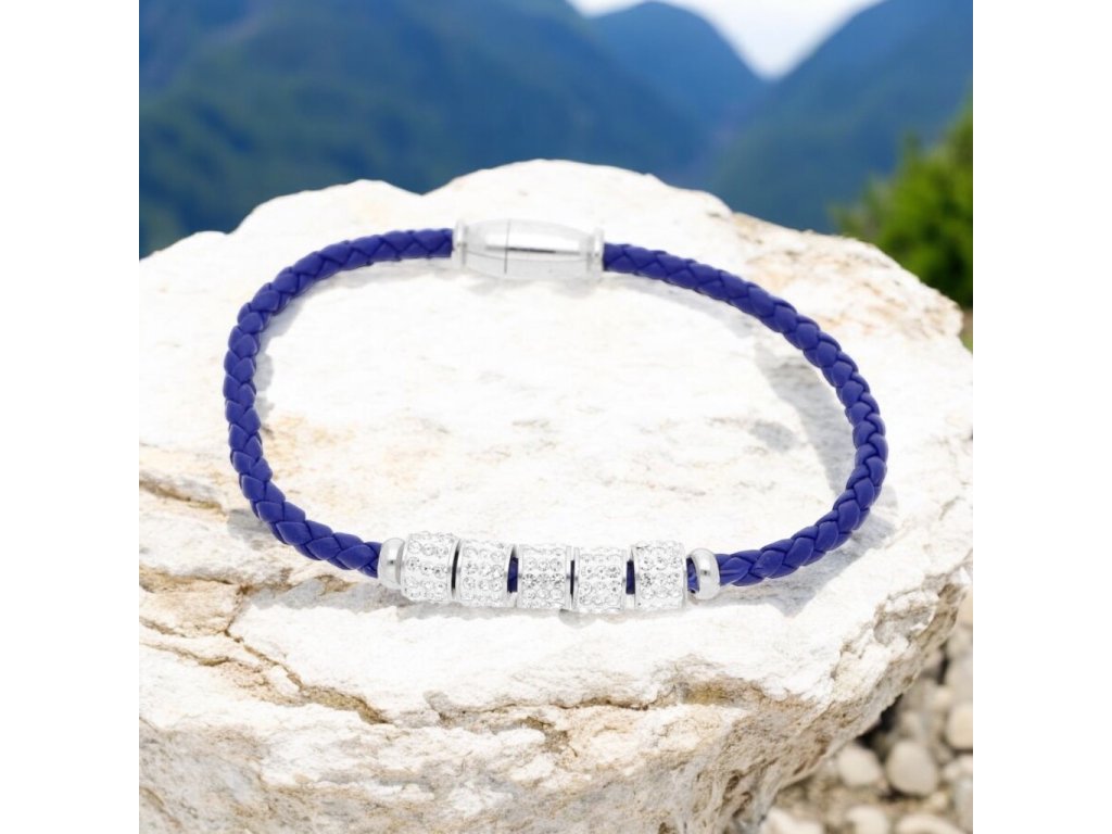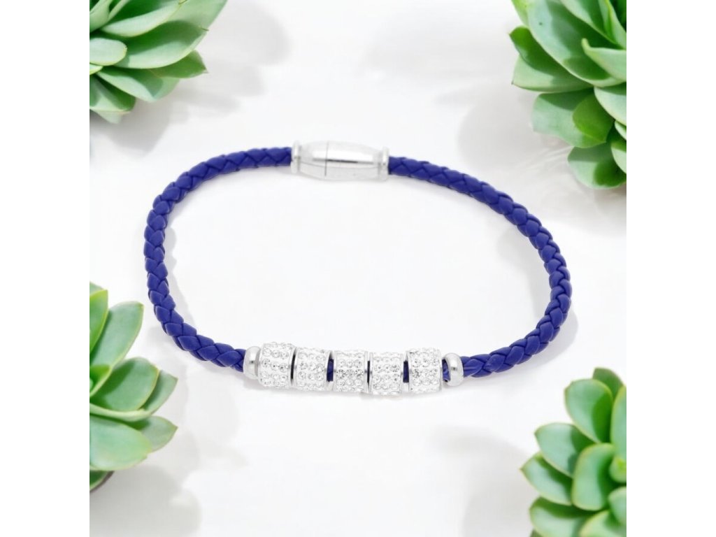 Krásny, jednoduchý náramok z PU kože a chirurgickej ocele doplnený o zirkóny. Krásne doplní zápästie a tým aj každý outfit.