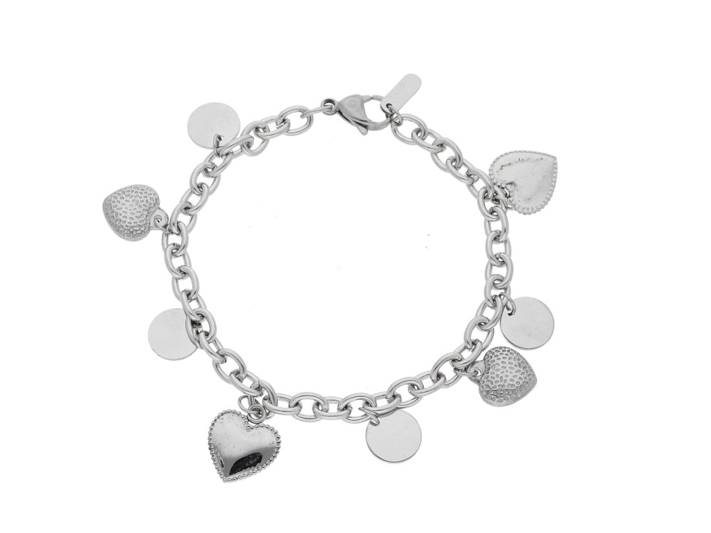 Potešte seba alebo svojich blízkych týmto nádherným náramkom z chirurgickej ocele so srdiečkami.