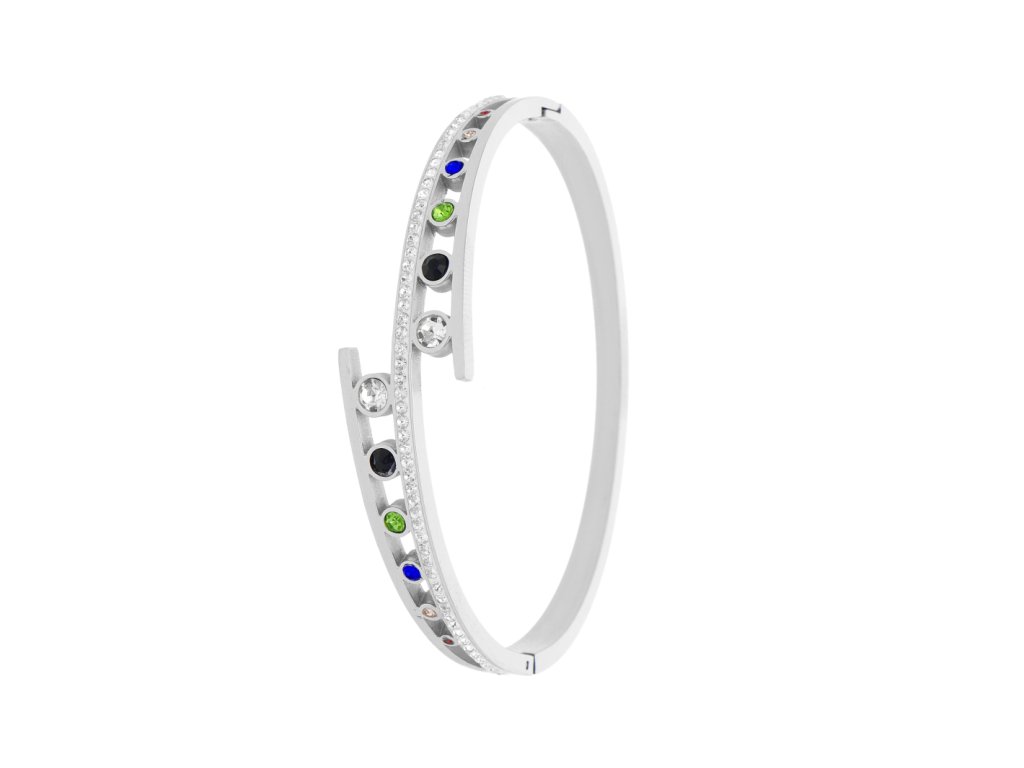 Elegantný farebný dámsky náramok z chirurgickej ocele doplnený zirkónmi, ktoré dodávajú náramku jedinečnosť a sviežosť. Náramok má jednoduché zapínanie na zacvaknutie a je ho možné použiť na obvod zápästia od 16 do 18 cm.