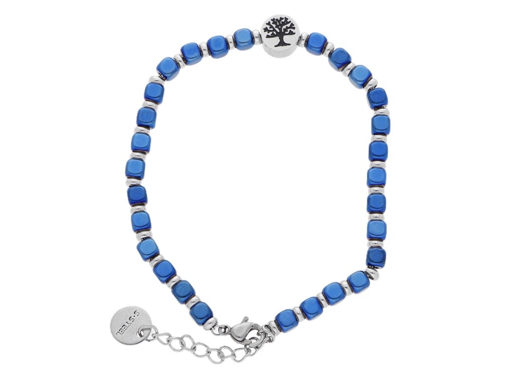Dámsky oceľový náramok modrej farby so stromom života z chirurgickej ocele.