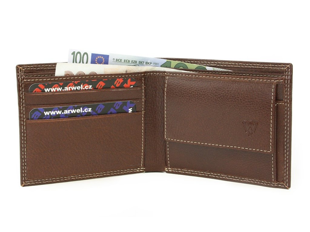 2 priehradka na bankovky, kapsa na mince, 3 kapsy na kreditné karty, 2 skryté kapsy, dvojité prešívanie.