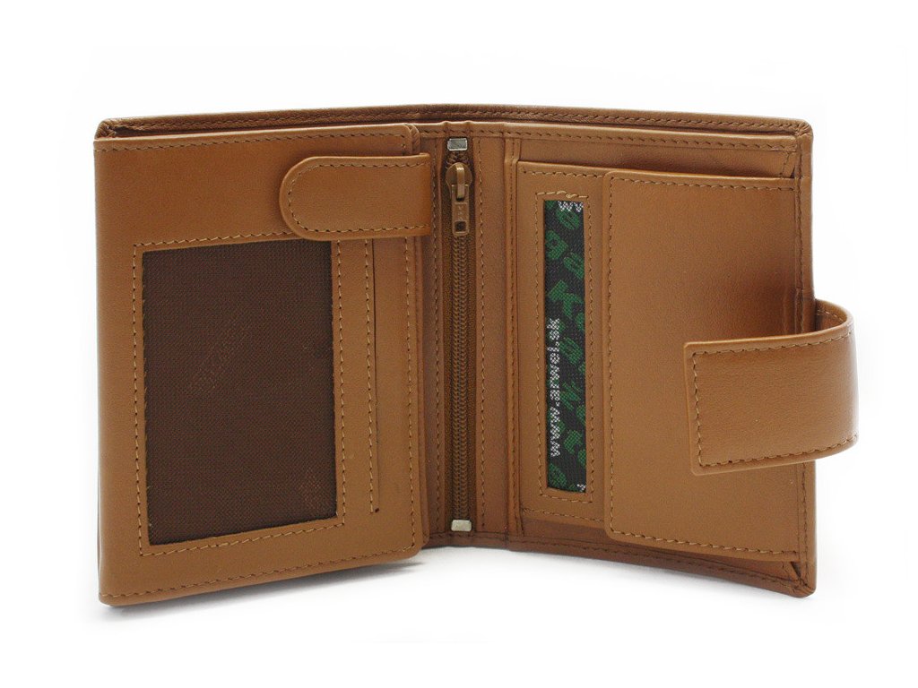 Bohato vybavená pánska peňaženka - dokladovka na výšku obsahuje 2 priehradky na bankovky, 1 kapsu na mince, 10 kapsí na kreditné karty, 2 vnútorné a 3 priehľadné kapsy a 1 zipsová kapsa. Všetko chránené zapínaním.