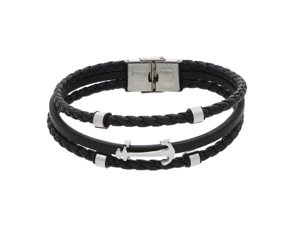 Kožený náramok čierny s kotvou LHF232