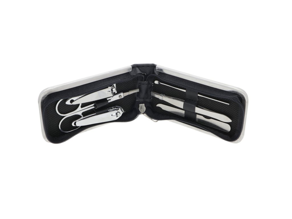 Manikúra obsahuje nožničky, 2 ks klieštikov, pinzetu, odstraňovač kožičky a pilník.