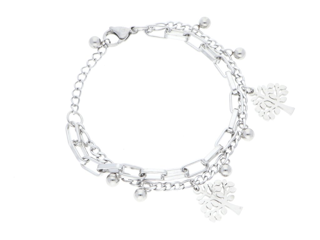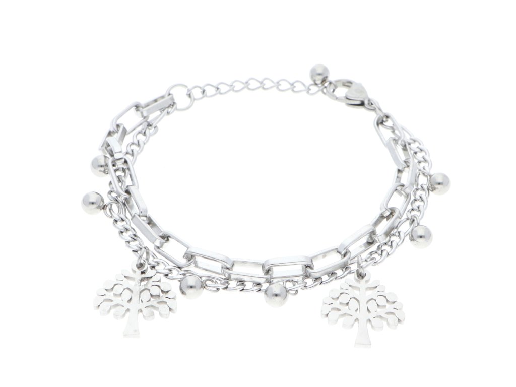 Dámsky dvojitý náramok z chirurgickej ocele so stromom života.