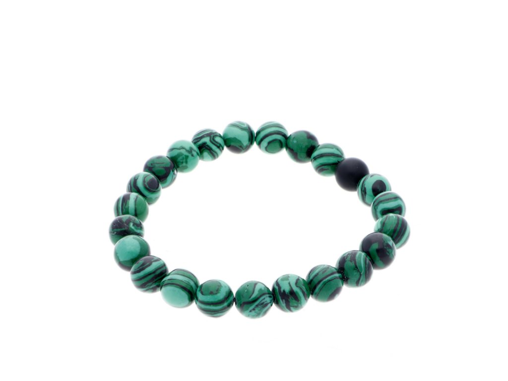 Naťahovací náramok s guličkami v zelenej farbe.