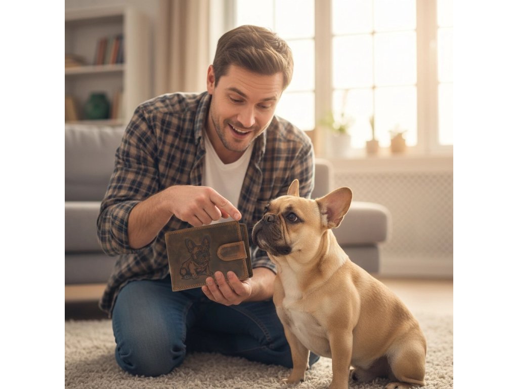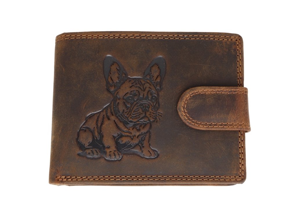Pánska kožená peňaženka hnedá s motívom Buldočka