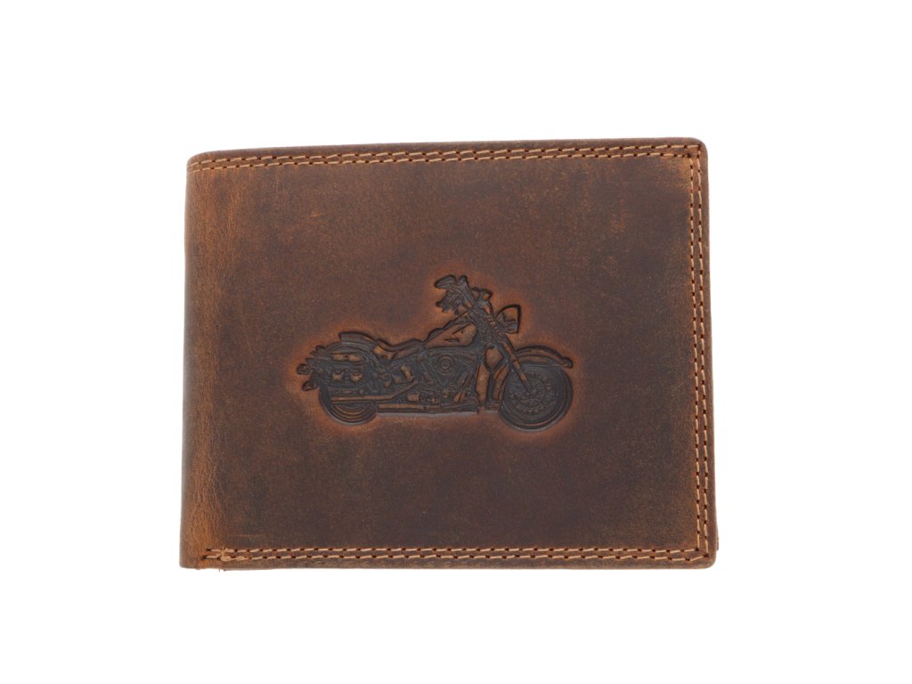 Pánska kožená peňaženka hnedá s motívom Motorky