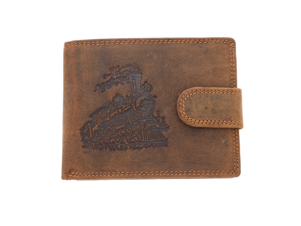 Pánska kožená peňaženka hnedá s motívom Vlaku