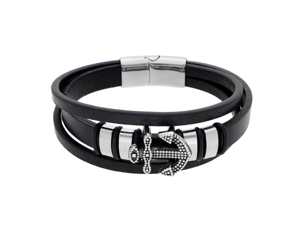 Pánsky kožený náramok s kotvou z chirurgickej ocele.