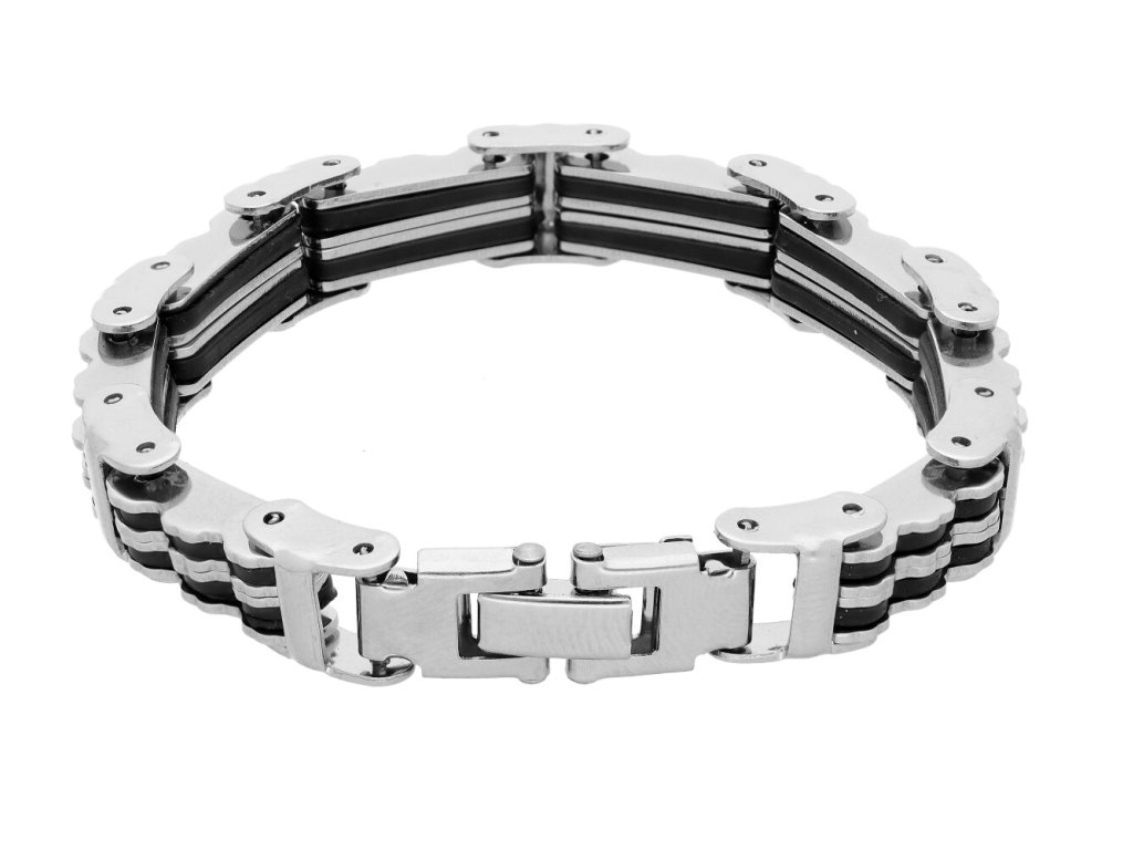 Pánsky mohutný náramok z chirurgickej ocele a kaučuku.