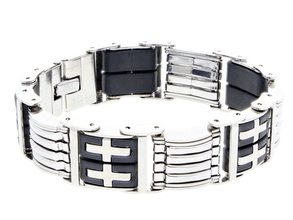 Pánsky náramok z chirurgickej ocele a kaučuku.