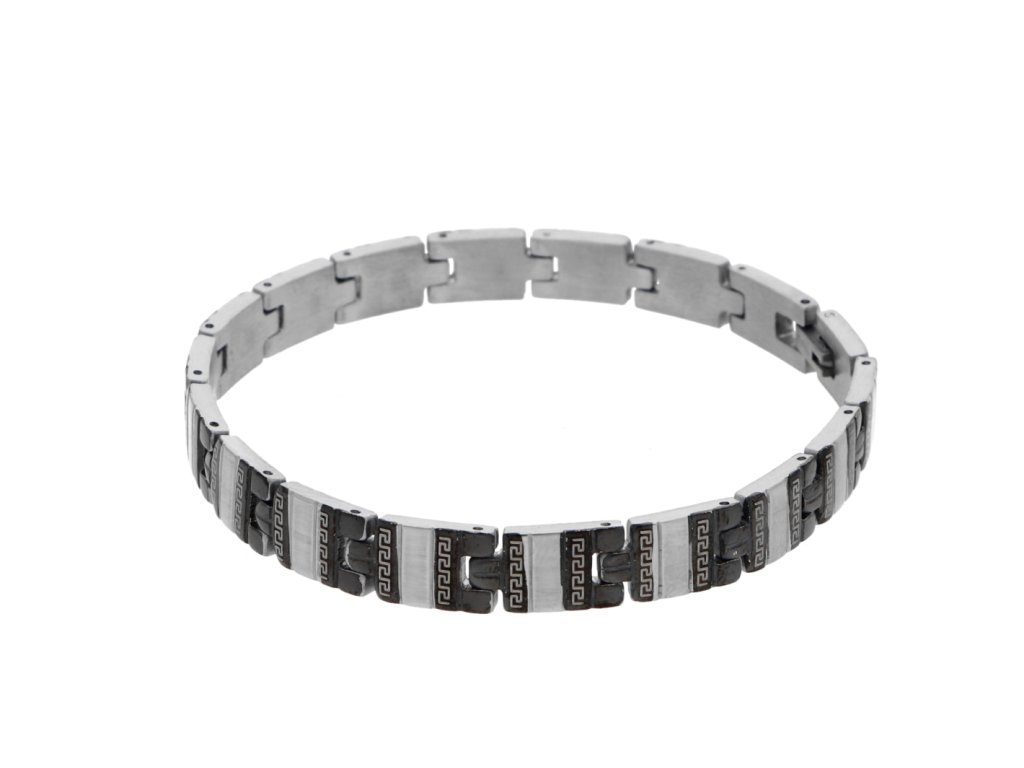 Vzorovaný pánsky náramok z chirurgickej ocele v čiernom prevedení.