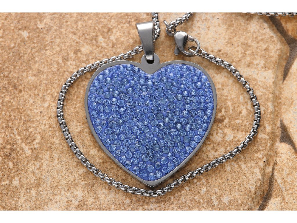 Krásna jemná retiazka s príveskom v tvare srdca z chirurgickej ocele v modrej farbe doplnená o zirkóny.