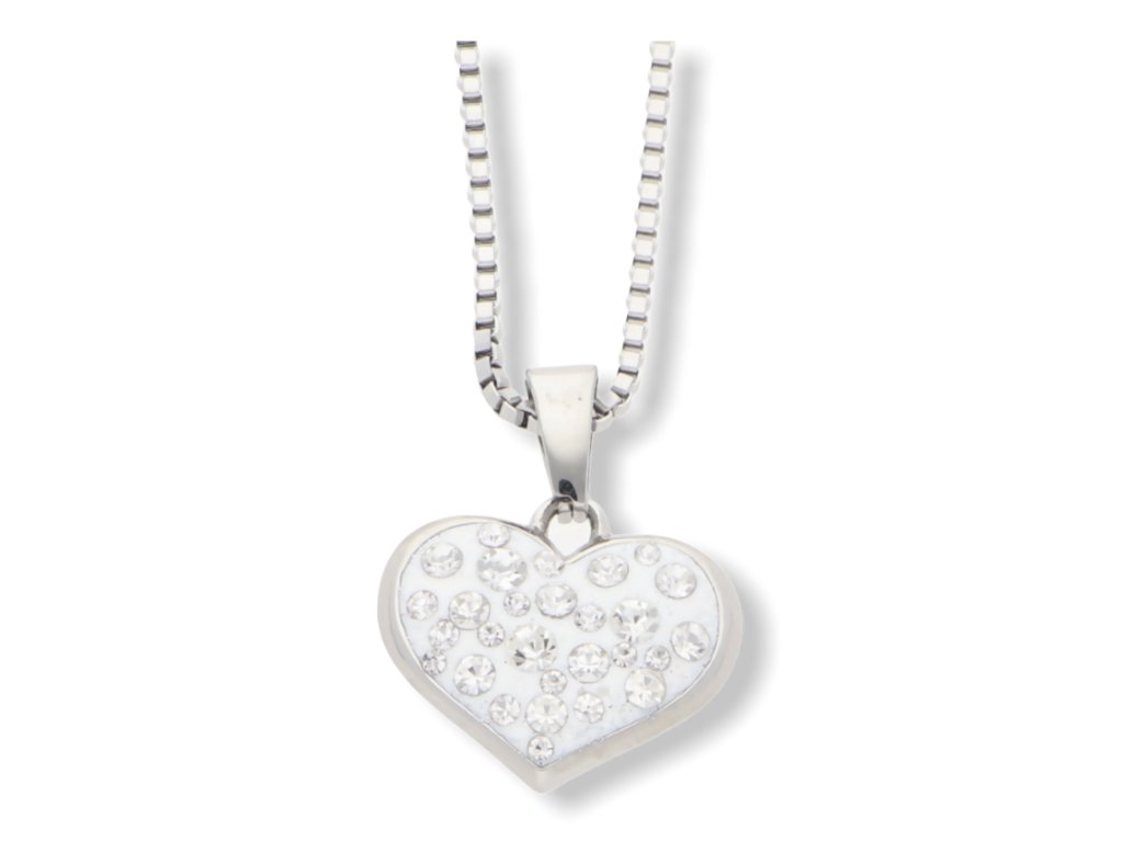 Krásna jemná retiazka s príveskom v tvare srdca z chirurgickej ocele doplneným o zirkóny.