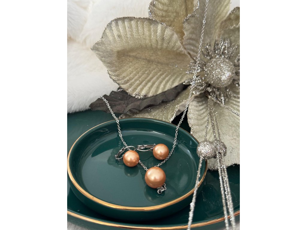Rozmery: priemer prívesku guličky 1,2 cm, dĺžka retiazky 44 až 50 cm, šírka 0,6 mm. Náušnice priemer guličky 9 mm.