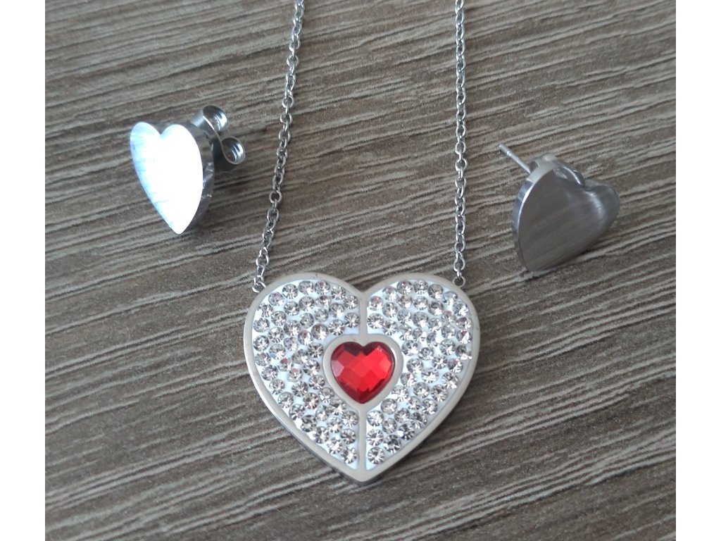 Set retiazky a náušníc z chirurgickej ocele srdce