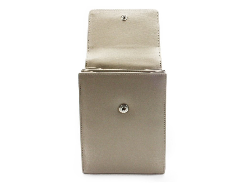 Kabelka disponuje dvomi hlavnými kapsami, ktoré poskytujú prehľadné usporiadanie drobných osobných vecí. Klopa na magnet zaisťuje ľahké a bezpečné uzavretie. Vo vnútri sa nachádzajú štyri kapsičky na karty alebo doklady, vďaka čomu je kabelku možné použiť aj ako elegantnú peňaženku s popruhom.