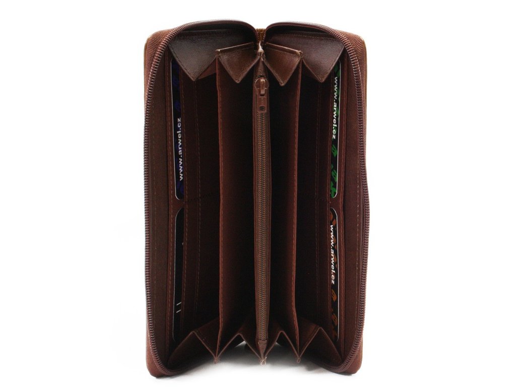 2 priehradky na bankovky a ďalšie 2 priehradky, do ktorých je možné vložiť mobilný telefón, vnútorná zipsová kapsa na mince, 10 kapsí na platobné karty.