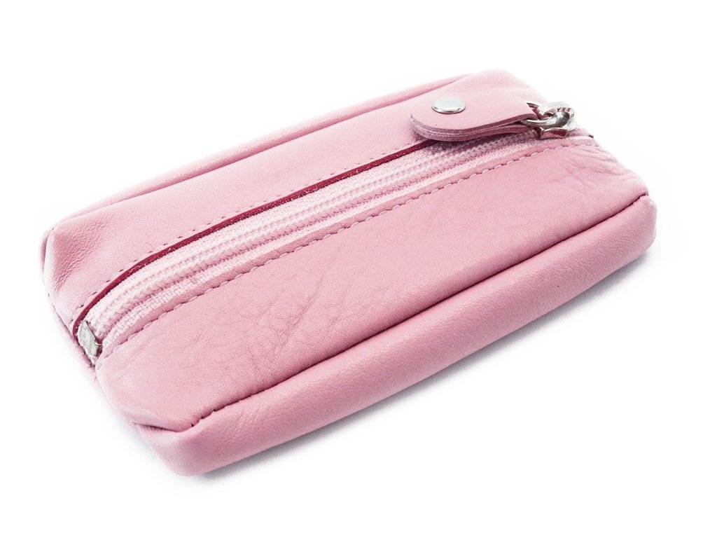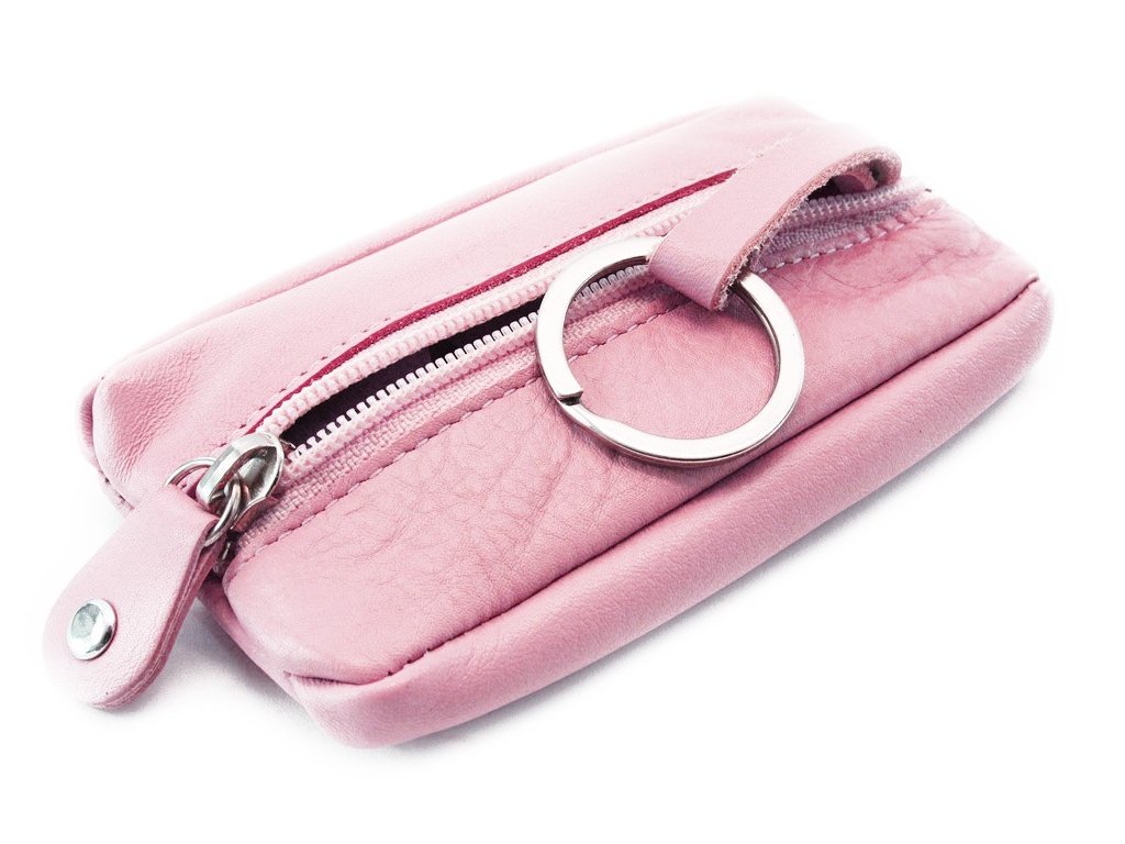 Svetloružová kožená kľúčenka so zipsovou kapsou 619-2418-71